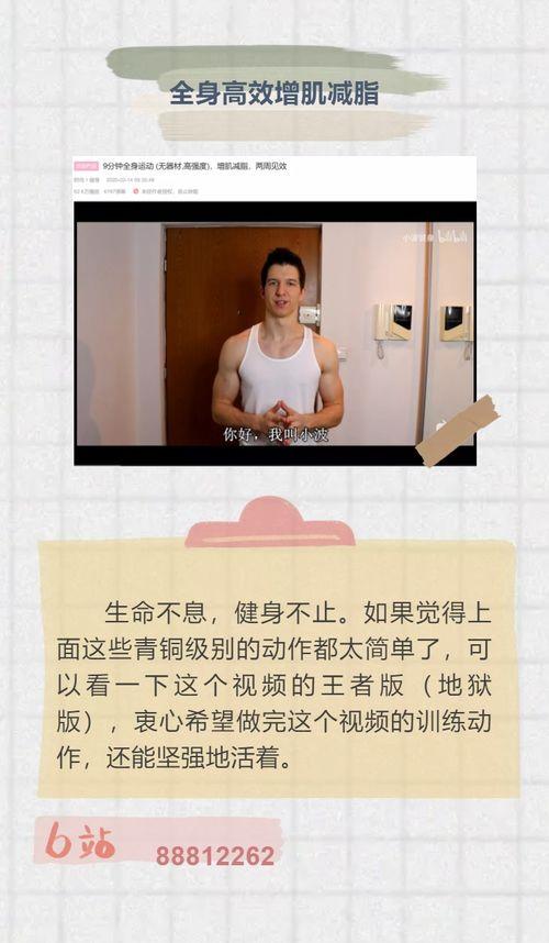 1. 《燃脂有氧操》:这个视频由一位健身教练带领,动作简单易学,节奏明快,让你在家也能轻松燃脂。